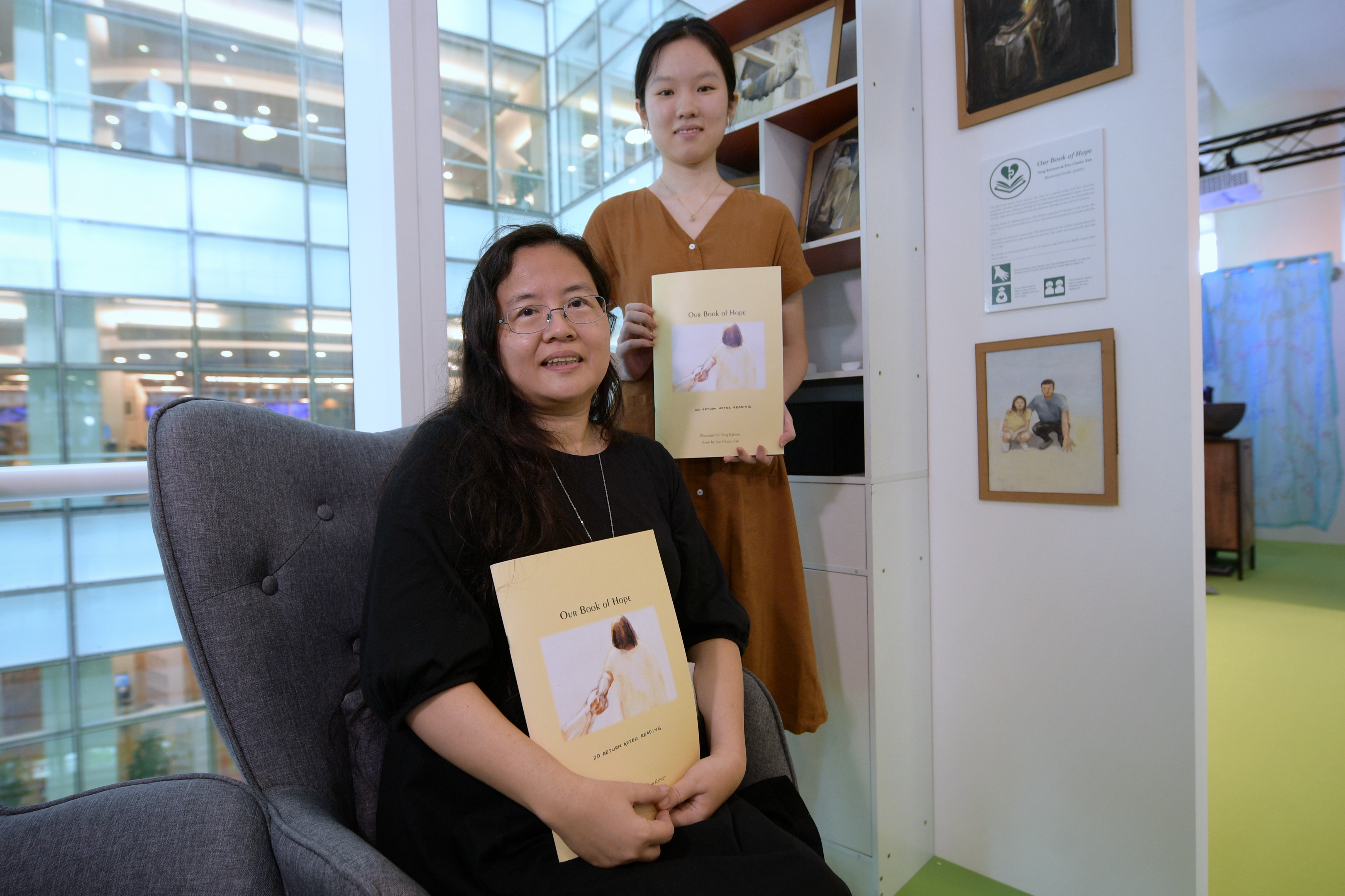 Housewife Foo Choon Ean (left) and student Yang Kaiwen, with their book Our Book Of Hope.