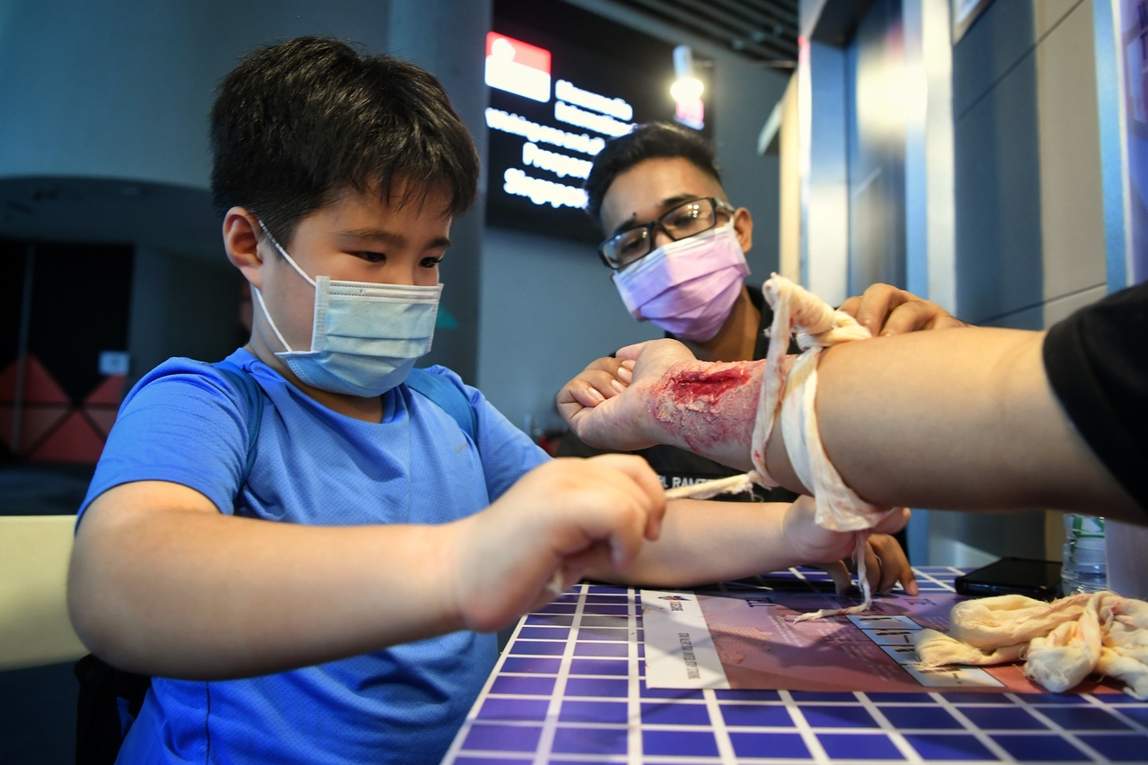 Madam Noor Hana Maszlan, 35, a housewife who took her four-year-old son and two daughters, aged seven and nine, to the SGSecure roadshow in Kampung Admiralty, said she was particularly impressed by the simulated terrorist attack.