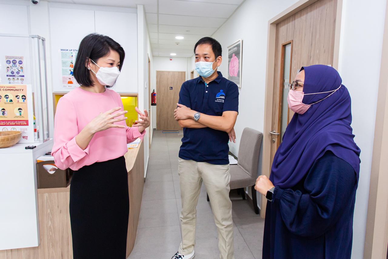 (From left) Minister of State for Family and Social Development Sun Xueling, AMKFSC Community Services chief executive officer Vincent Ng and divisional director (specialist) Hilyah Saparin.
