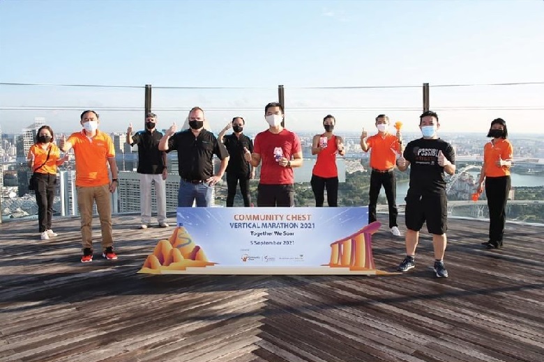 At the launch event, Mr Tan Chuan-Jin, Speaker of Parliament and Adviser to the National Council of Social Service, climbed the stairs at MBS with two representatives from the Community Chest and one from MBS, going up 57 storeys to reach the SkyPark.