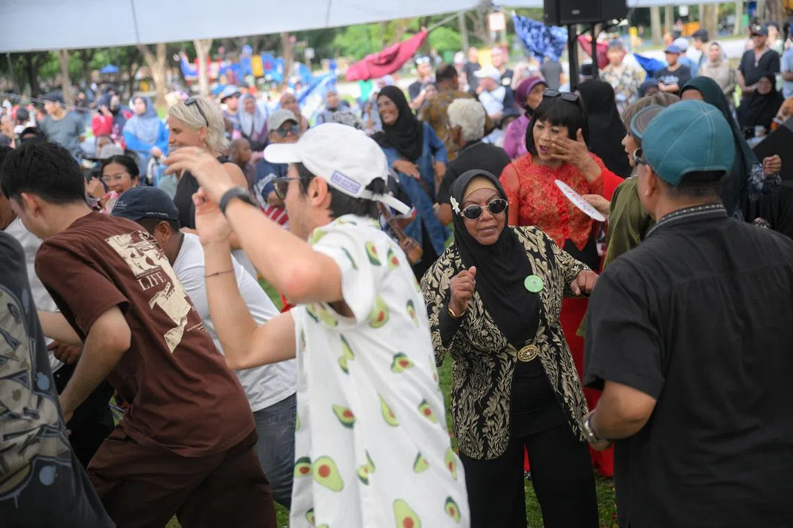 People participate in a two-hour-long Joget Dangkong during Hari Orang Pulau, or Islanders’ Day, held at West Coast Park on June 14.