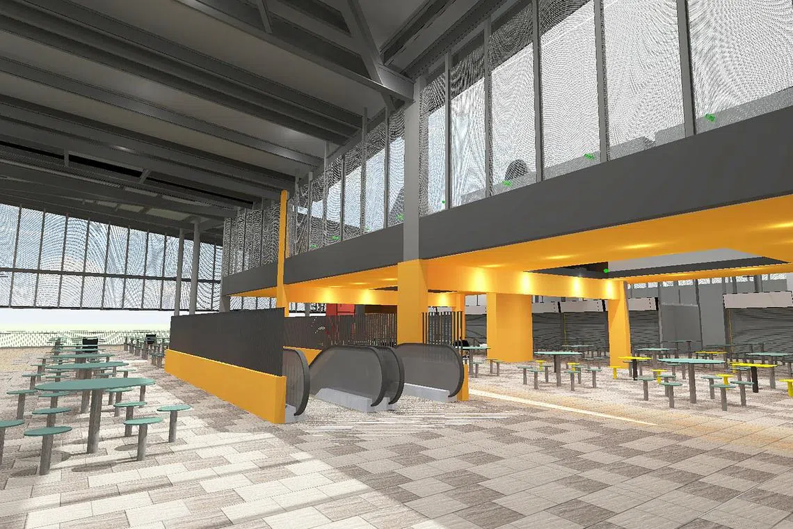 The escalators and staircase at the hawker centre will be relocated to free up space, and the carpark entry and exit points will also be repositioned for more stalls on the first storey.