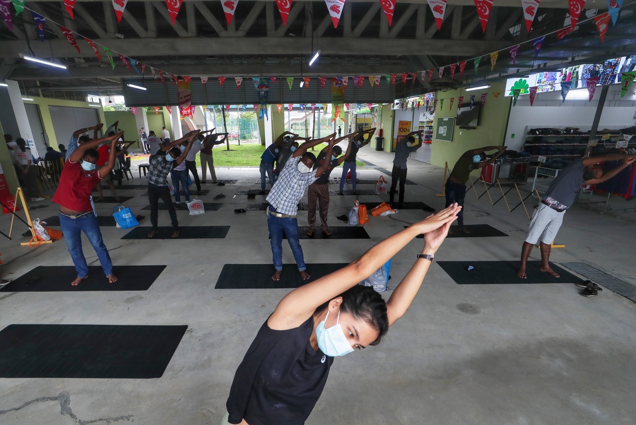 Migrant workers paint murals, do yoga as part of National Day celebrations