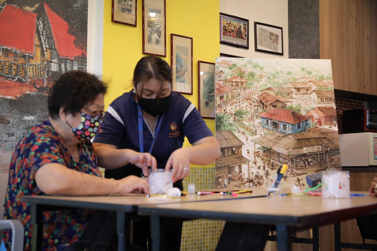 Seniors at Sunlove Day Activity Centre in Eunos, at the second edition of Collection Cares programme by the NHB.