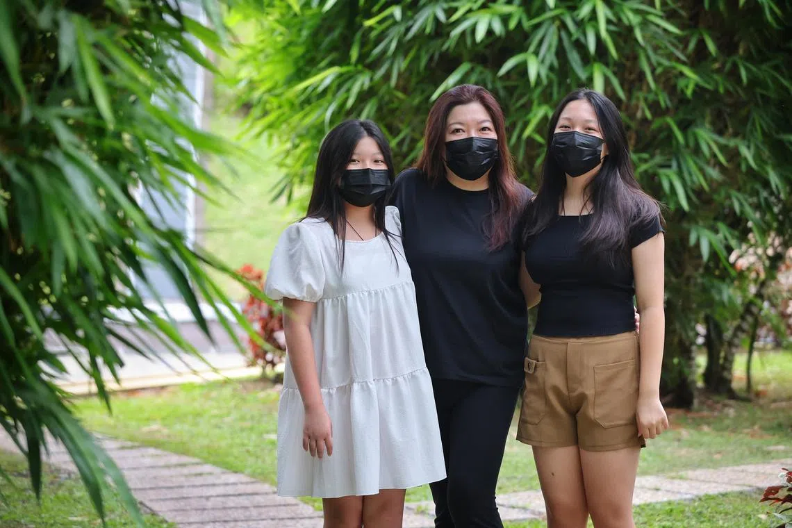 Madam Pauline Fong (centre) with her daughters Chen Yi Yuan (left) and Chen Yi Xin.