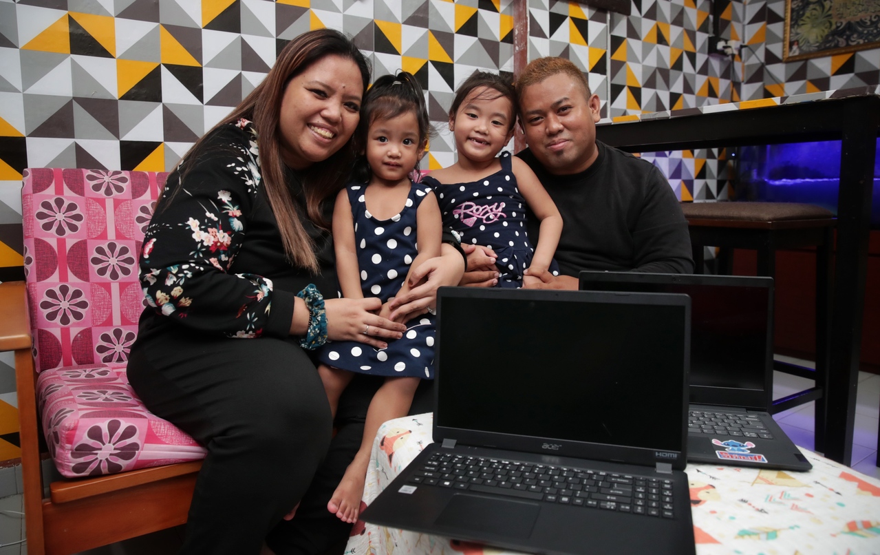 Madam Nurhidayah Sazali (left) and her family received laptops from the South Central Community Family Service Centre.
