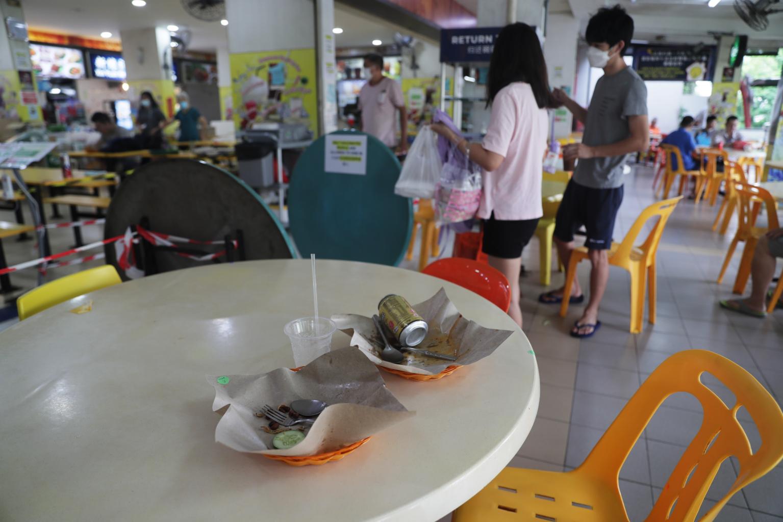 The situation was the same at Kim San Leng Food Centre at Bishan Street 13, where a few customers also left used crockery behind.