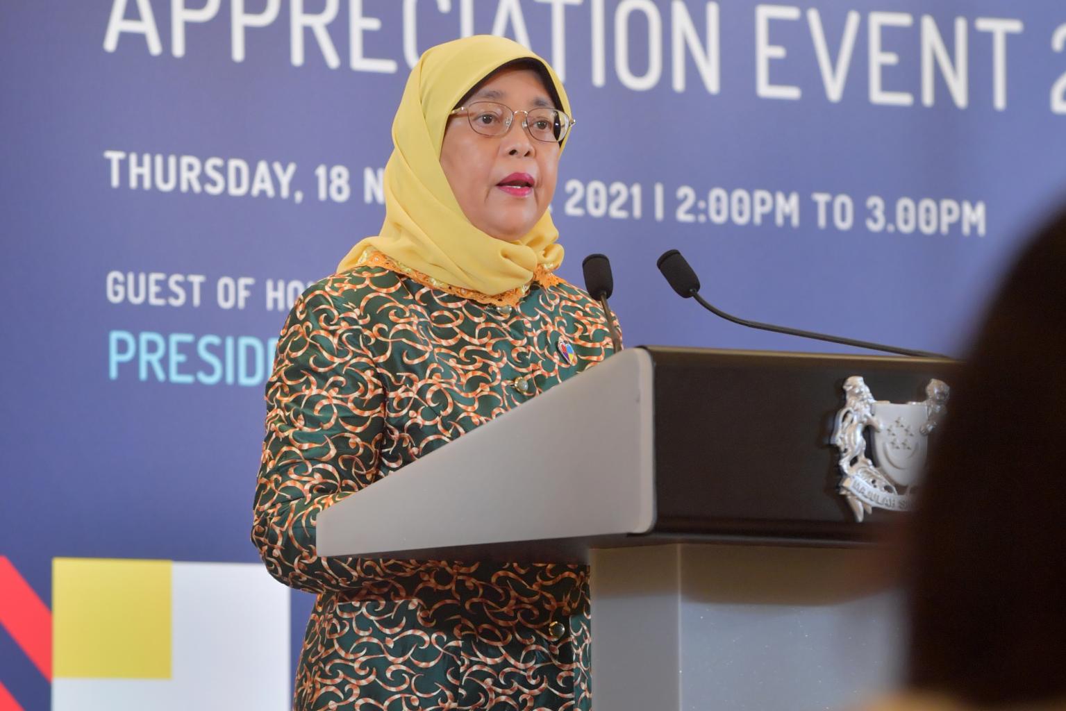 She was speaking at the President's Challenge 2021 appreciation event held at the Istana, organised to thank 77 donors, partners and volunteers for their contributions.