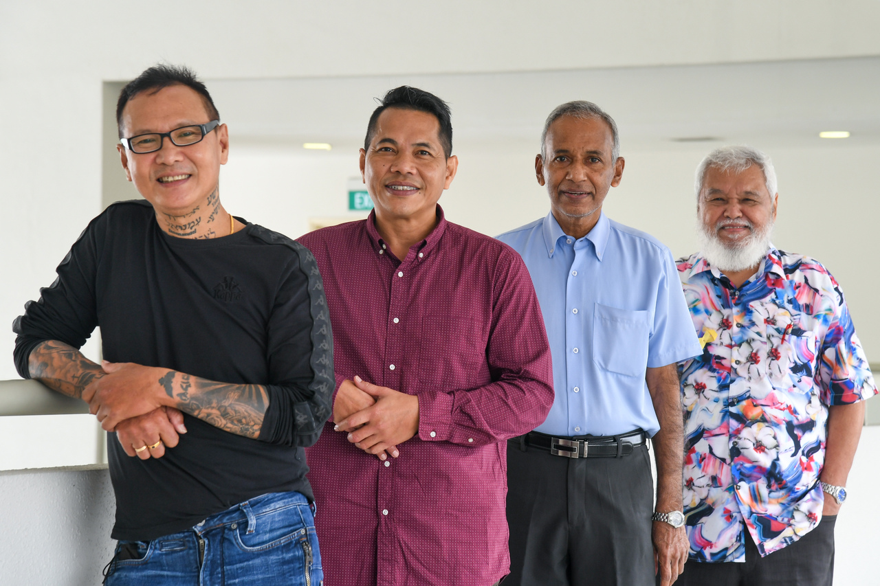 (From left) Sana peer leaders David Chong and Mustakem Mohamed Rais, and volunteers Gopalakrishnan Nair and Percival Shepherdson.