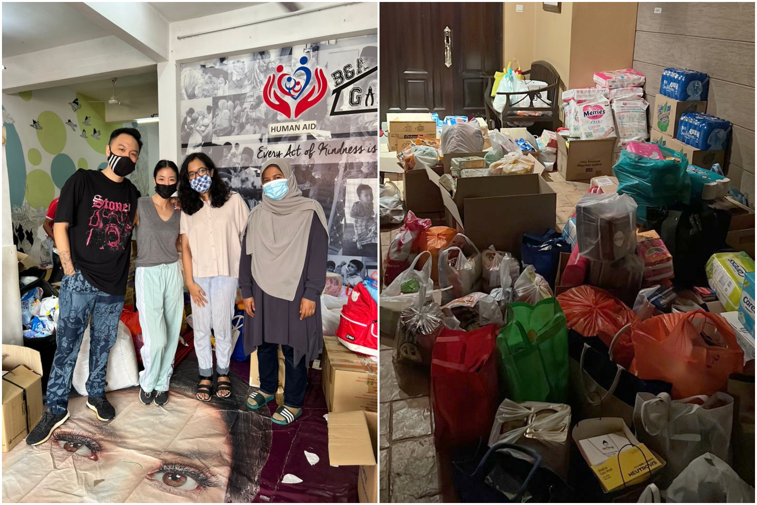 The Sam Willows band member Jonathan Chua and his Malaysian wife Amanda Chaang (second from left) delivered donated items to various shelters in Kuala Lumpur.