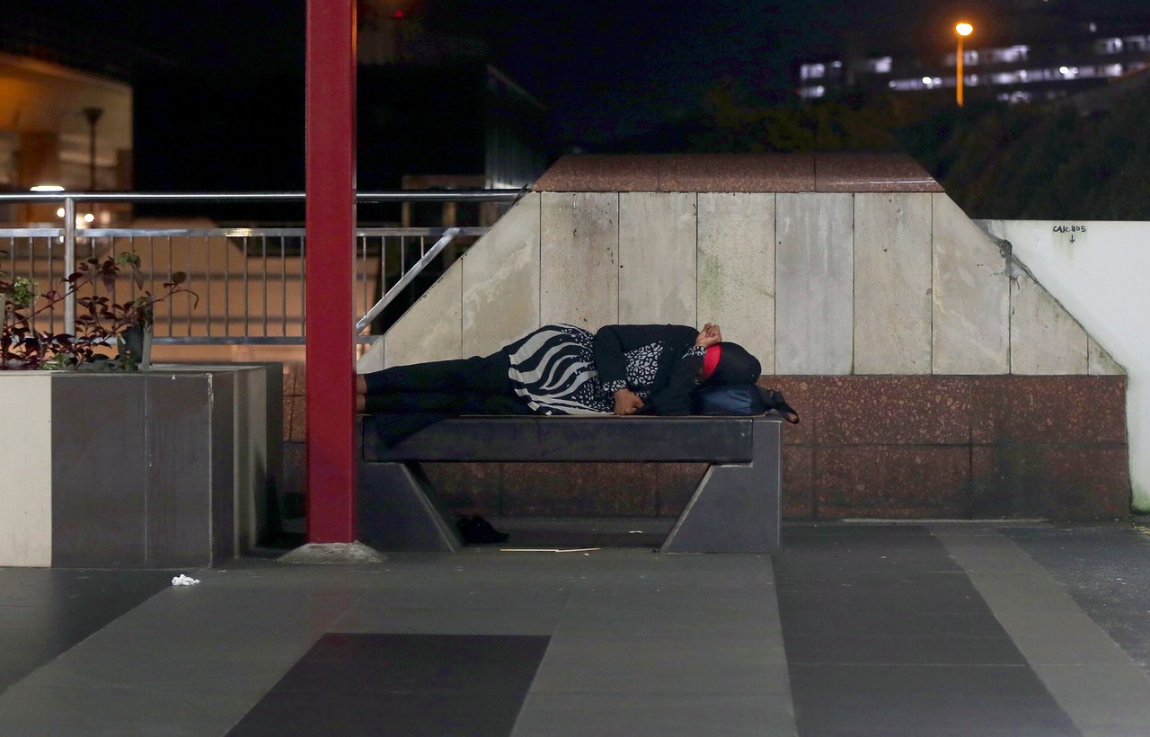 SINGAPORE - She was spotted on a bench at Woodlands MRT station three days after Christmas at around 11pm and mostly spent her time scrolling through her mobile phone. At around 1am, Madam Jane (not her real name) curled up on the bench, which was lined with cardboard, tucked her small bag under her head, and fell asleep.