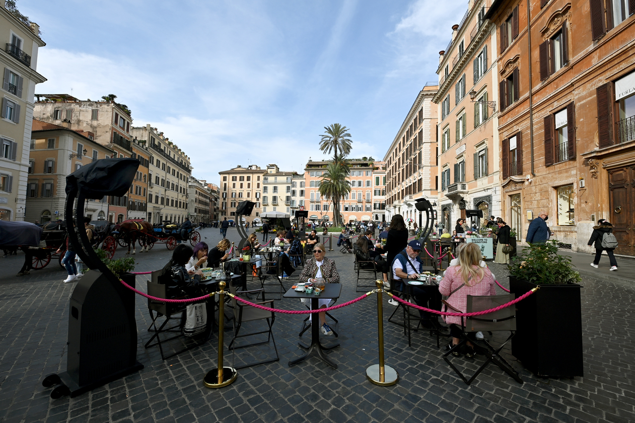 People dining near Piazza di Spagna in Rome on Oct 29, 2021. Some travel companies have seen a few cancellations of European trips.