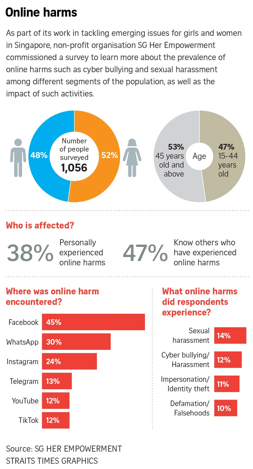SHE commissioned the survey to find out how such online harms impact girls and women here, and what can be done to enhance online safety and help them seek recourse and support, if necessary.