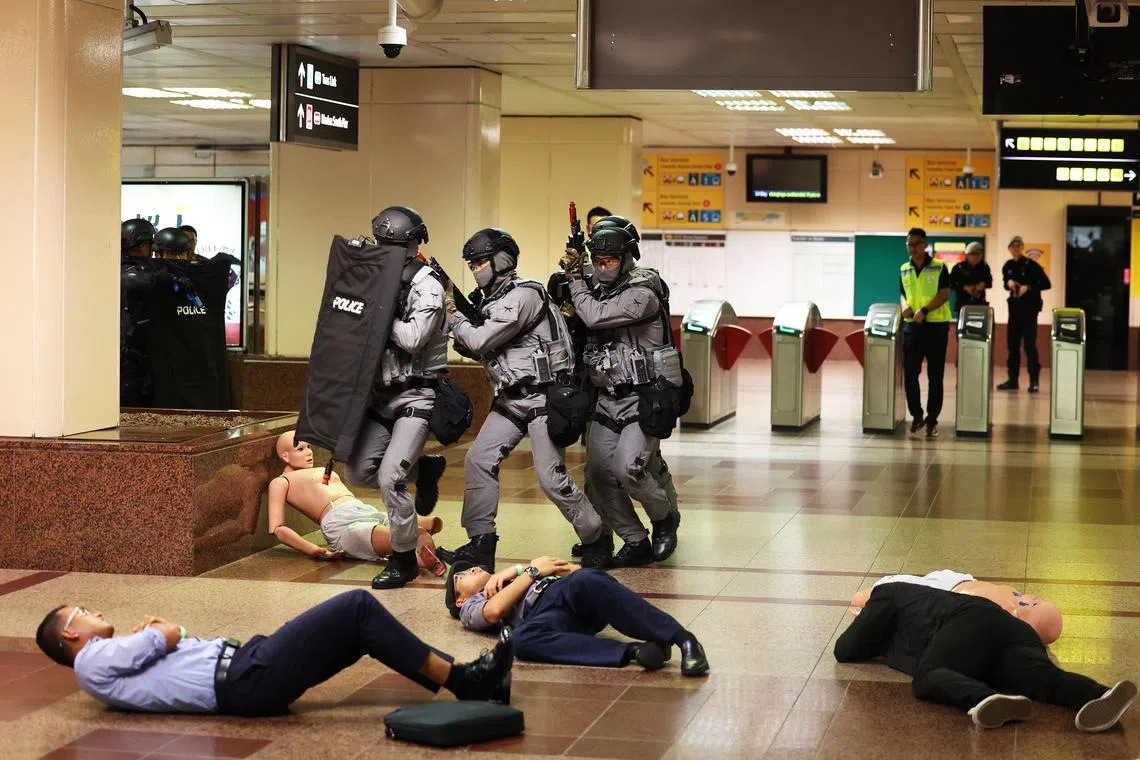 More than 250 personnel from the police, Singapore Civil Defence Force (SCDF), Land Transport Authority (LTA) and SMRT Trains took part. This made it the largest anti-terror exercise at an MRT station, said an SPF spokesman.
