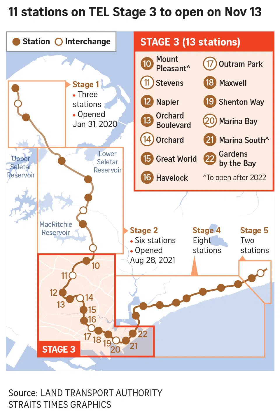 Two other stations in the third stage – Mount Pleasant and Marina South – will begin operations only when housing developments around them are ready.