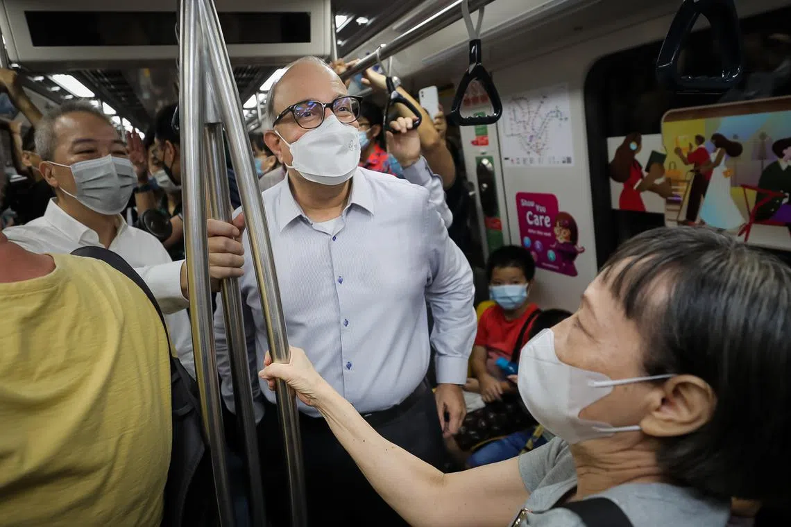 Transport Minister S. Iswaran on a Thomson-East Coast Line MRT train from Orchard to Havelock station on Nov 11.