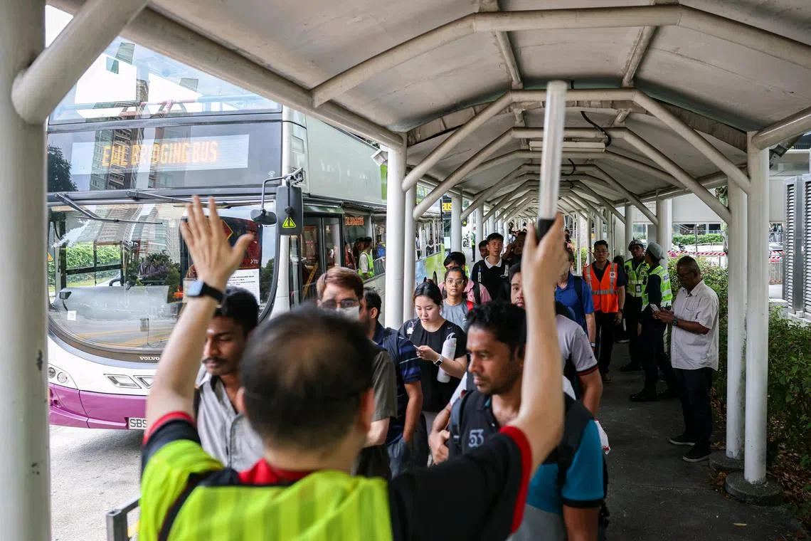 When The Straits Times visited the Buona Vista and Jurong East stations at about 7am on Sept 27, queues for the bridging buses moved briskly and there was almost no waiting time, with the buses arriving in quick succession.