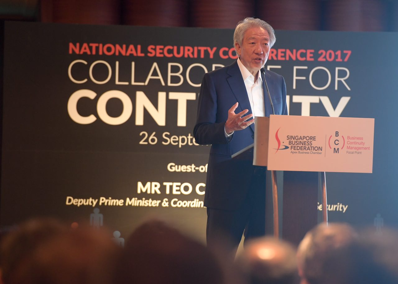 DPM Teo Chee Hean speaking at the National Security Conference on Sept 26, 2017.