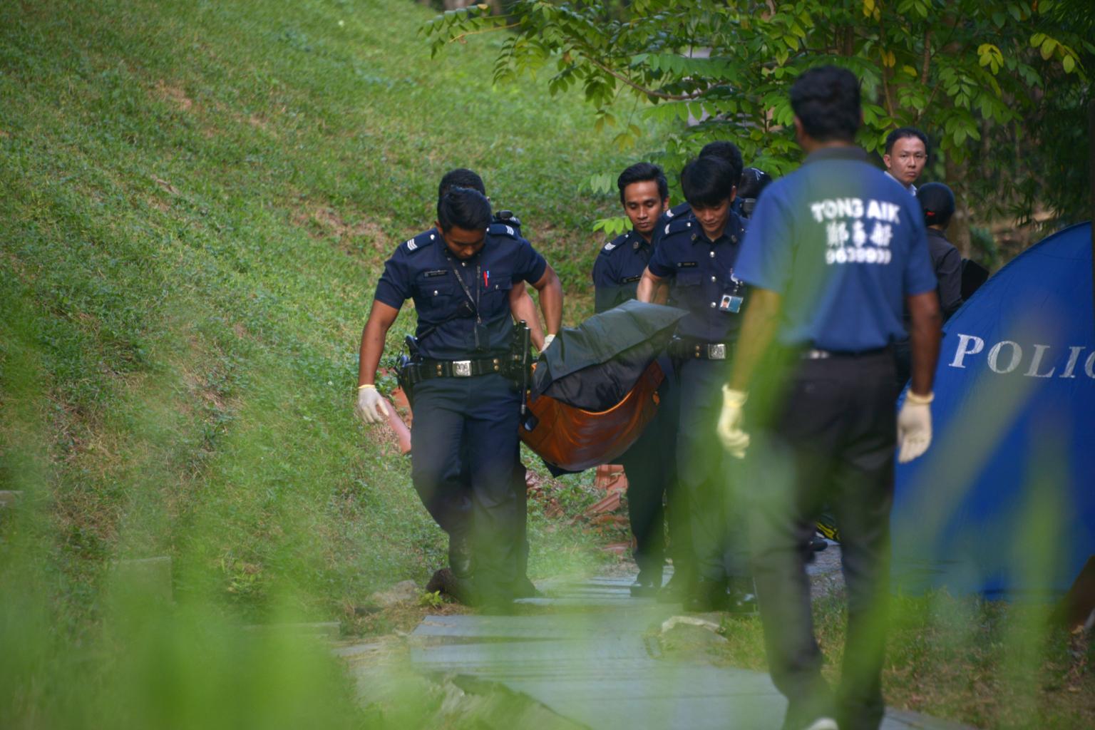 In a file photo taken on Aug 27, 2015, near Kheam Hock Road in Bukit Timah, the body of Indian national Chinniah Ganeshan is seen being taken away by police officers.