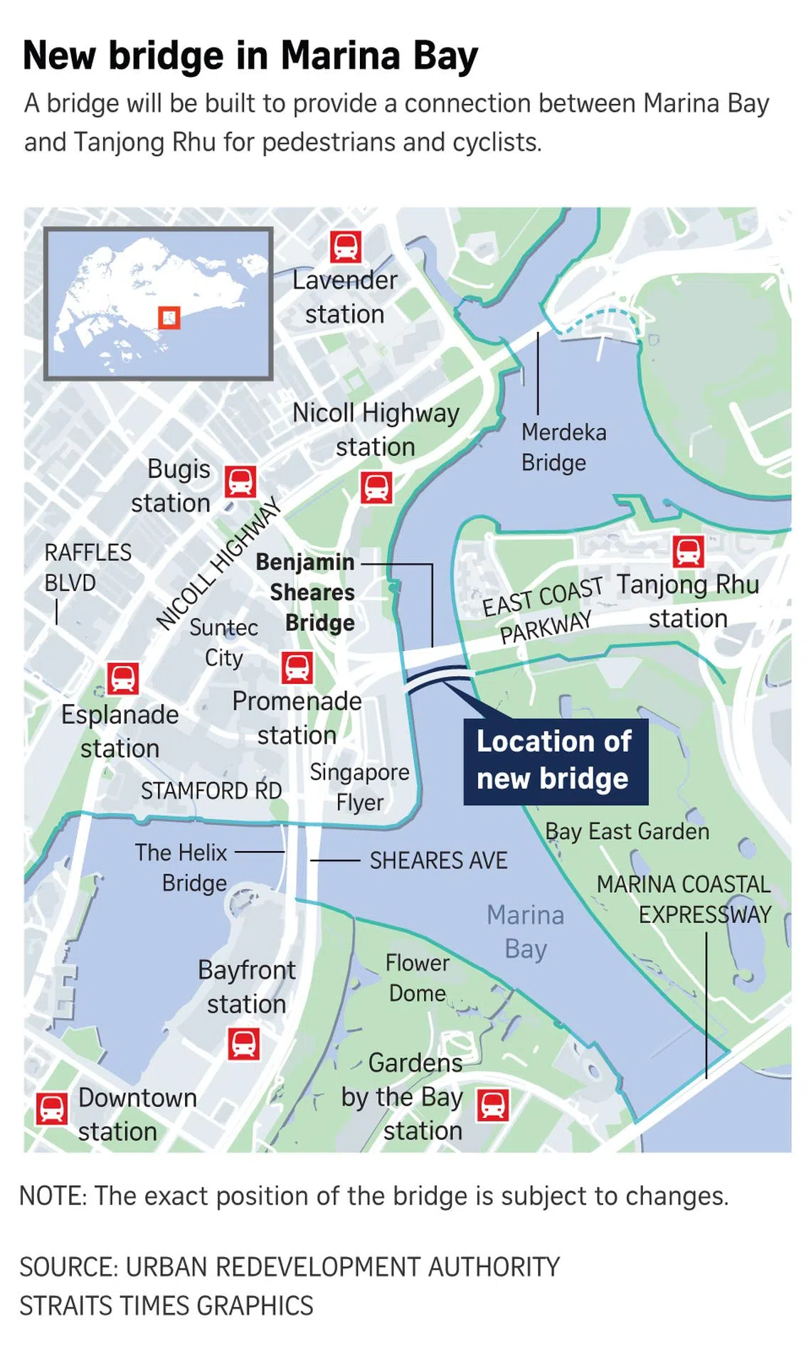 - URA calls tender for a pedestrian and cyclist bridge linking Marina Centre and Bay East Garden, catering to events and accessibility needs.