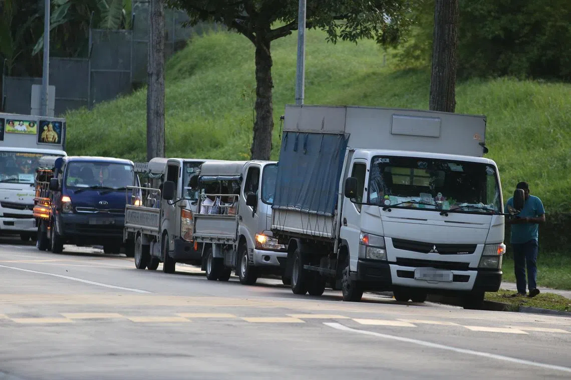 But workers still gathered along Woodlands Street 41. On some evenings, ST observed a line of seven lorries parked close to the bend, where they waited about 30 minutes for the workers.