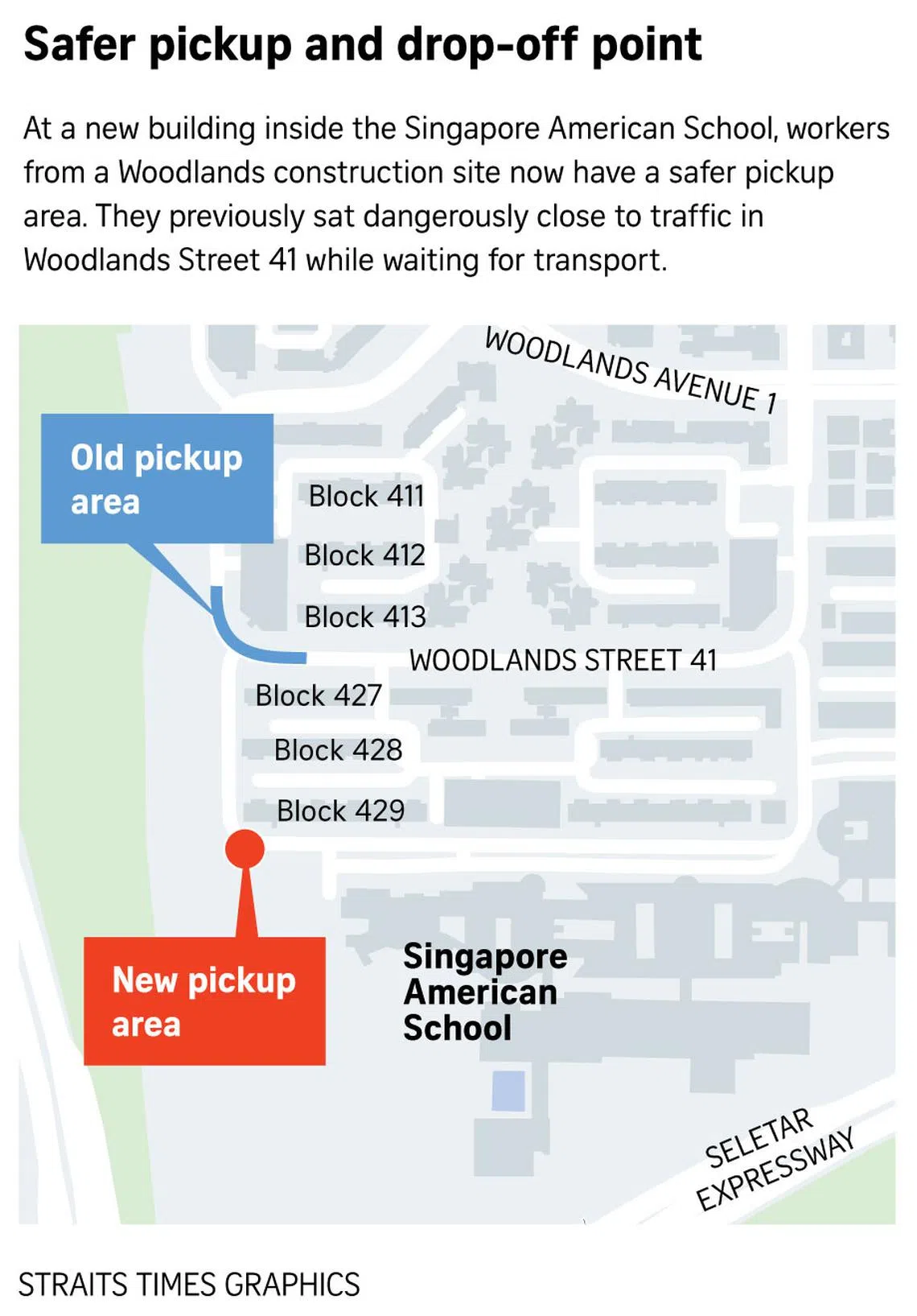 The reminder comes in the wake of feedback The Straits Times received from several residents in Upper Bukit Timah Road, Woodlands and Choa Chu Kang, who said workers are often made to wait near busy roads for their transport.