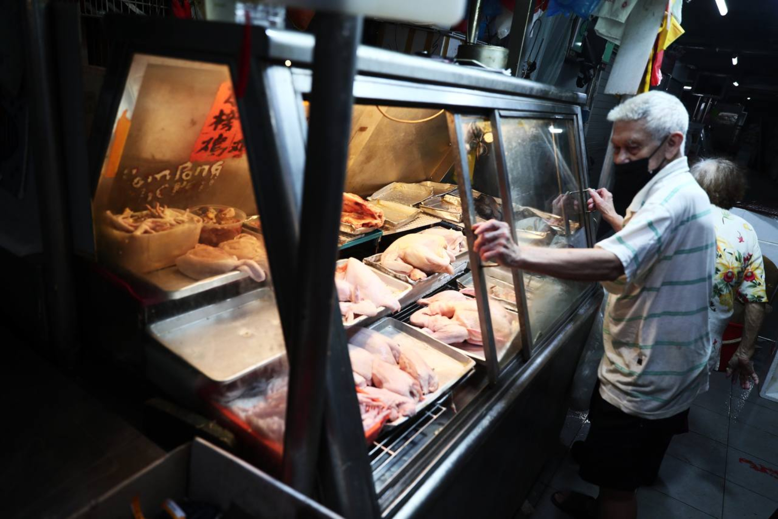 Mr Lui, owner of Chinatown Complex's Chong Kee poultry stall, says lesser stocks are left compared to other days,