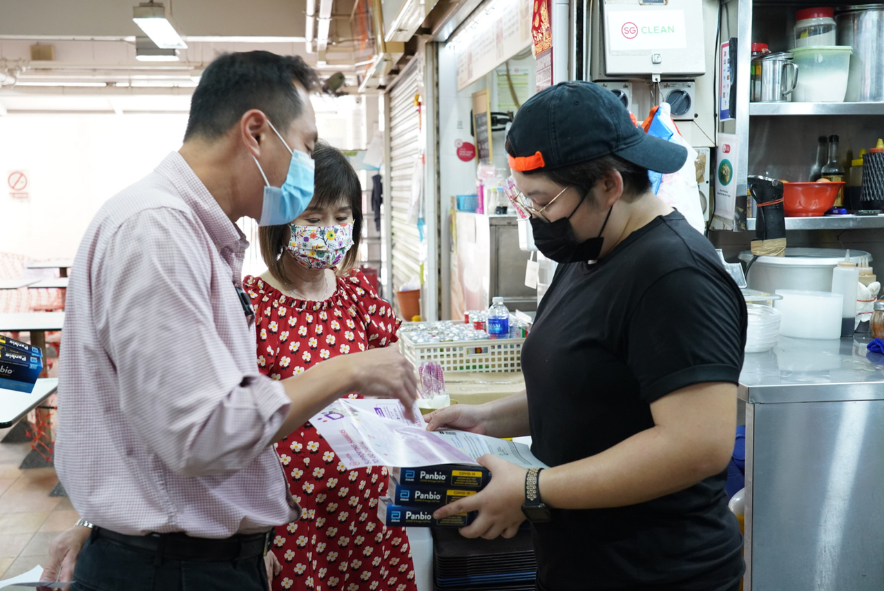While at the hawker centre, Dr Khor also spoke to stallholders about the importance of vaccination.