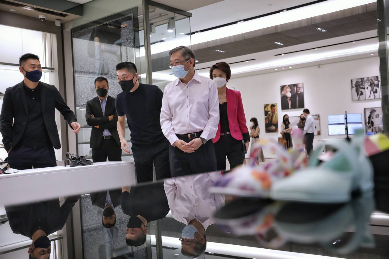 Minister for Trade and Industry Gan Kim Yong and Minister of State for Trade and Industry Low Yen Ling during a visit to Charles & Keith's headquarters in Tai Seng on Aug 24, 2021.