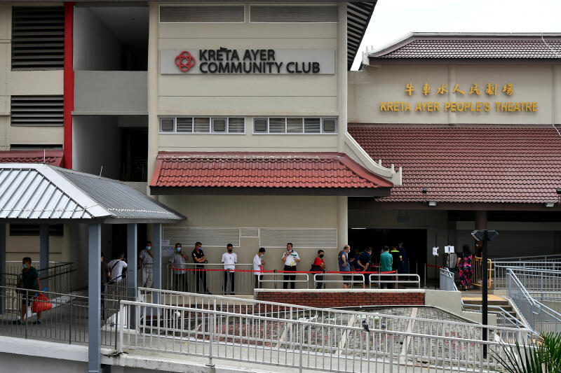 When The Straits Times visited at around 1pm, the queue was seen snaking out of the Kreta Ayer People's Theatre where the tests were being conducted.