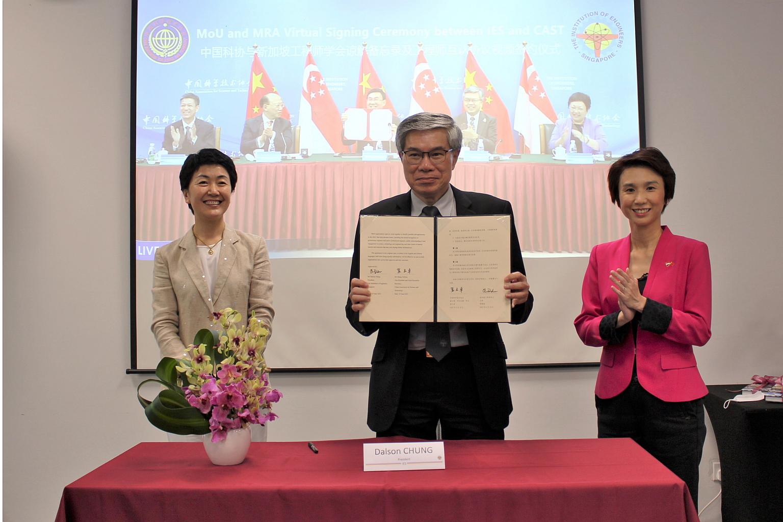 IES and the China Association for Science and Technology (Cast) on Thursday (June 30) signed a mutual recognition agreement to reduce barriers to cross-border work by engineers from China and Singapore.