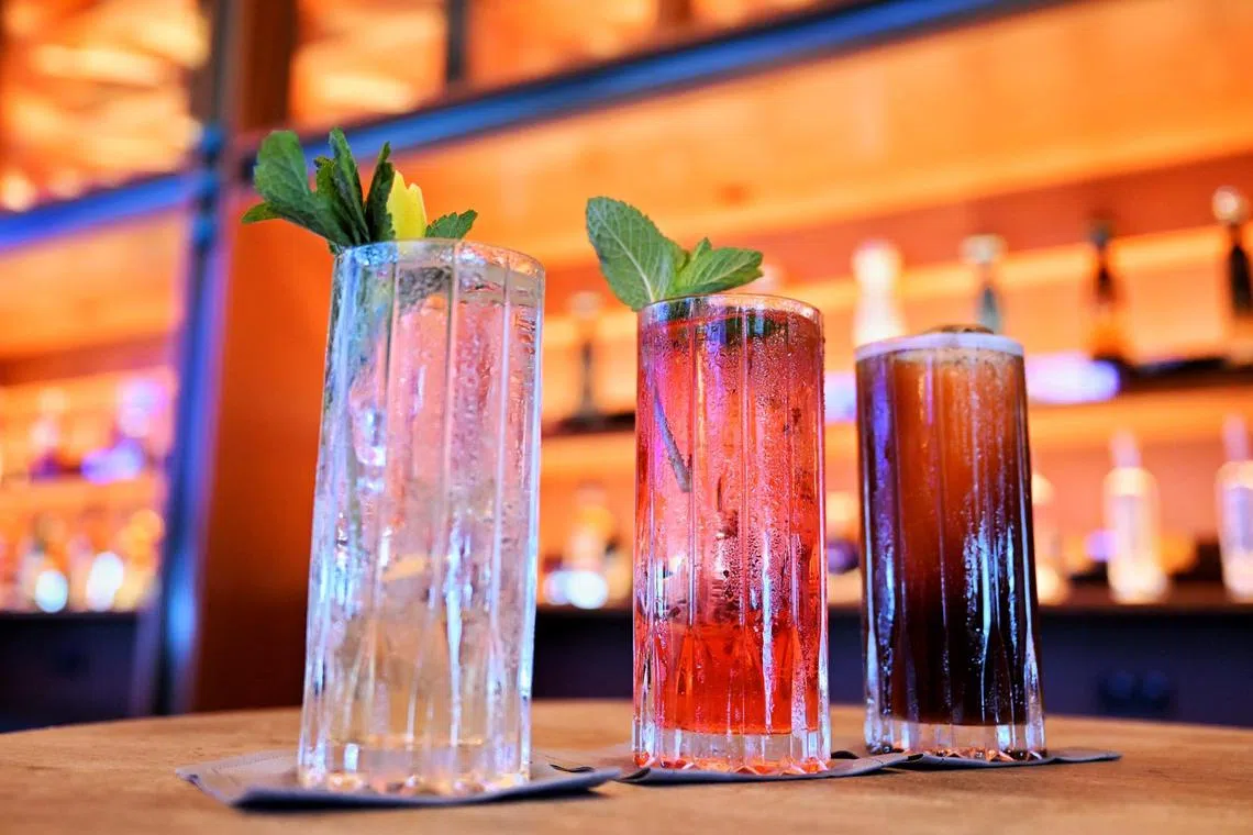 (From left) Cocktails inspired by Thai mango sticky rice, Mexican Paloma and Colombian coffee.