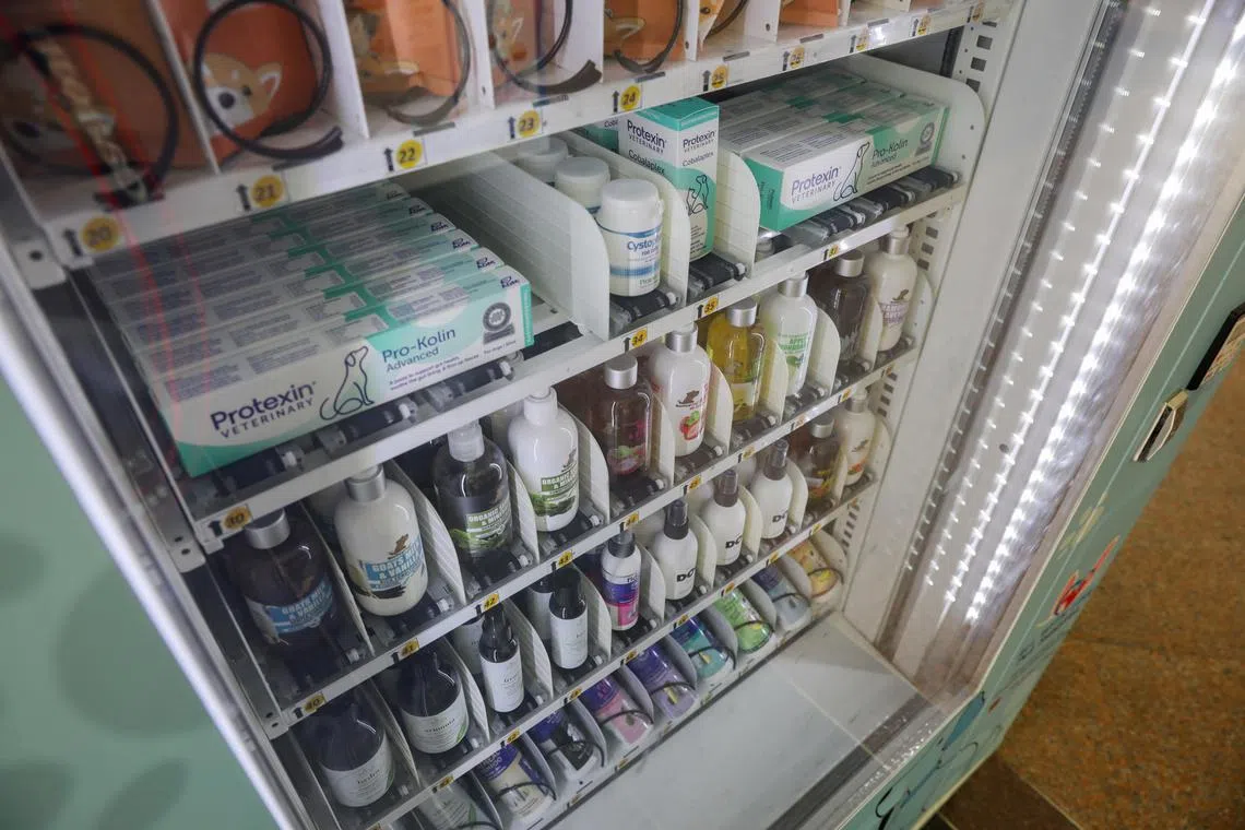 Each of the three All With Love vending machines across Singapore dispenses a variety of pet supplies, including pet shampoo and probiotics.