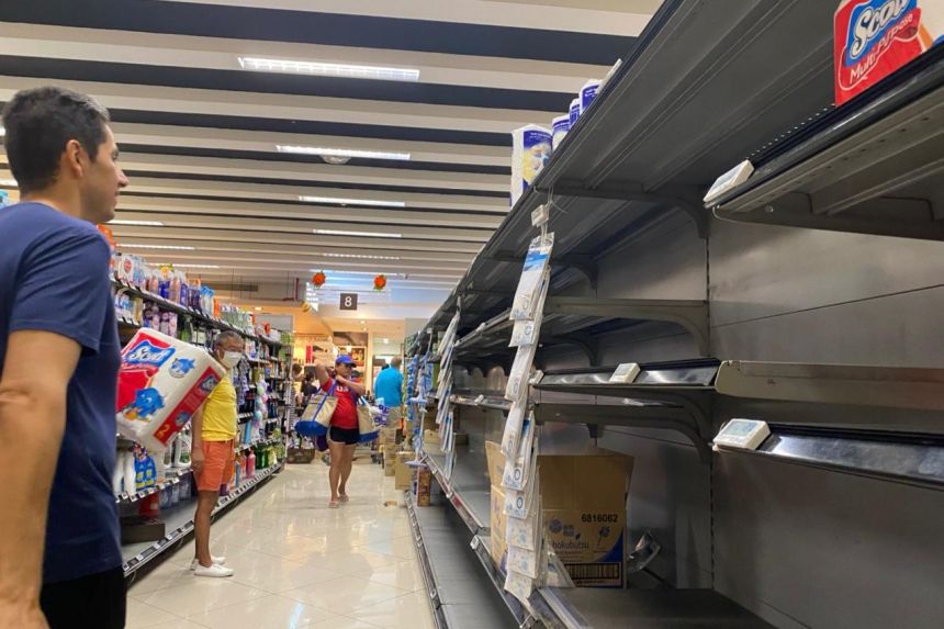 Long queues and empty shelves were seen at supermarkets hours after the Government announced that measures would be tightened to curb the spread of Covid-19.