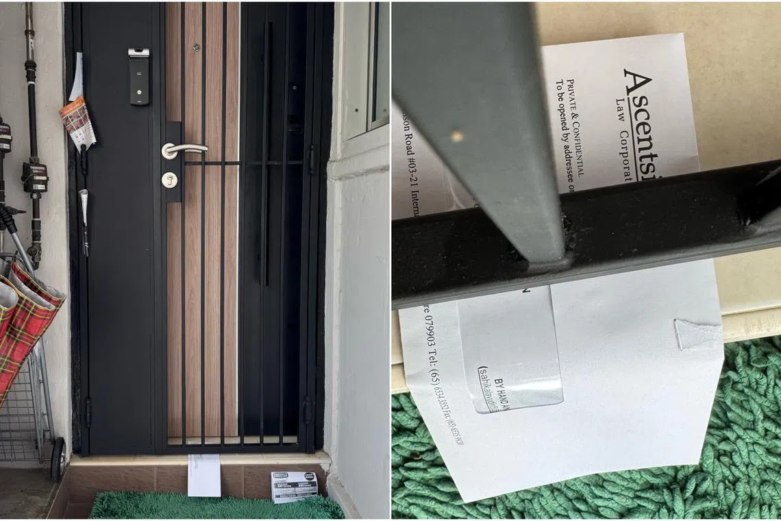 Fliers and letters seen at the door of the HDB unit in Teck Whye that is registered to the owner of ABC Nasi Kandar coffee shops, on Nov 30.