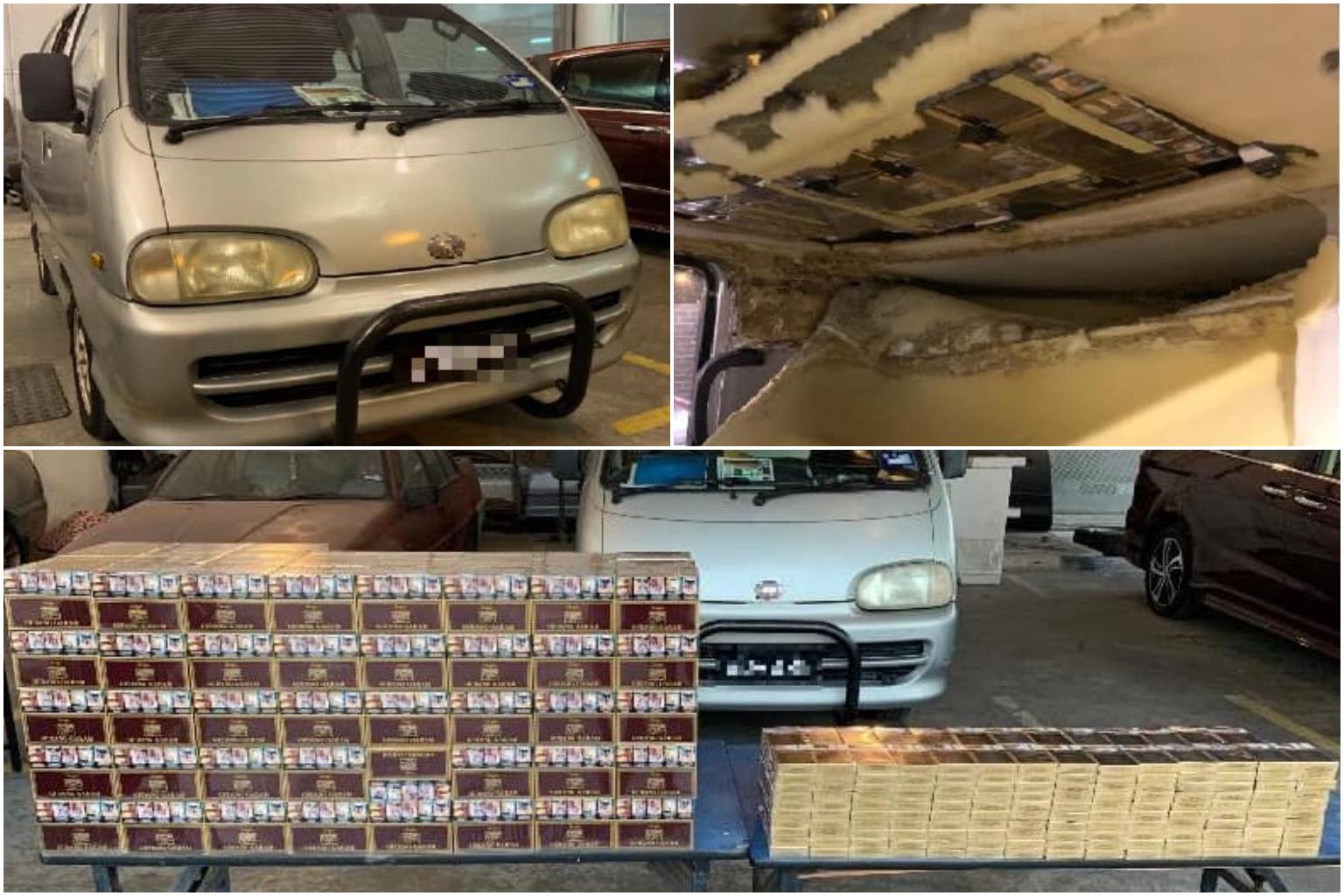 Contraband cigarettes seized from van's secret roof compartment at Woodlands Checkpoint