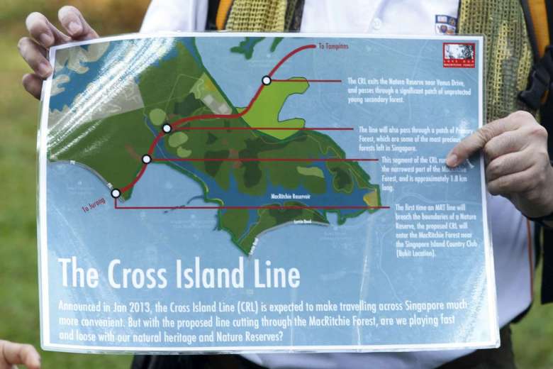 The 50km Cross Island Line was first announced in 2013 as a link between Changi and Jurong. Preliminary plans showed it cutting through primary and secondary forests in the Central Catchment Nature Reserve near MacRitchie Reservoir.