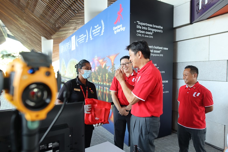 NTUC secretary-general Ng Chee Meng speaking to a worker at the Gardens by the Bay on March 18, 2020. He said workers have shared that their biggest concerns centre around sustaining their livelihoods and caring for their loved ones.