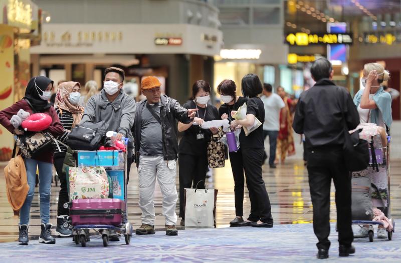 People with surgical masks in Changi Airport Terminal 3 on Feb 13, 2020. The Immigration and Checkpoints Authority said it had issued 4,535 stay-home notices as of Tuesday morning (March 3).