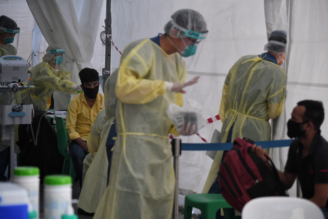 Migrant workers living in dormitories form the bulk of the remaining cases.