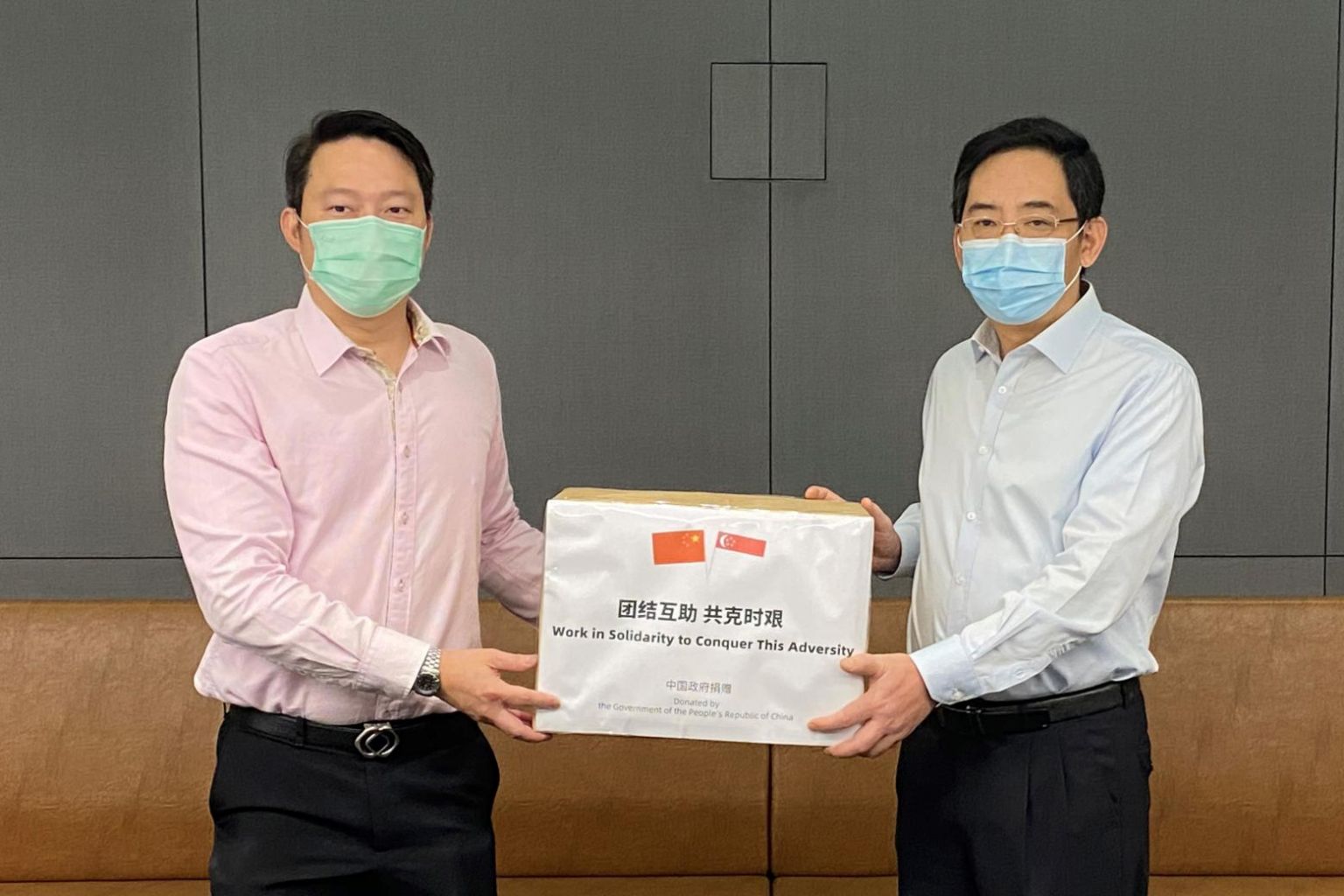 Its ambassador to Singapore Hong Xiaoyong handed over the masks to Singapore's Senior Minister of State for Health Lam Pin Min at the Ministry of Health (MOH) on Tuesday (May 5).