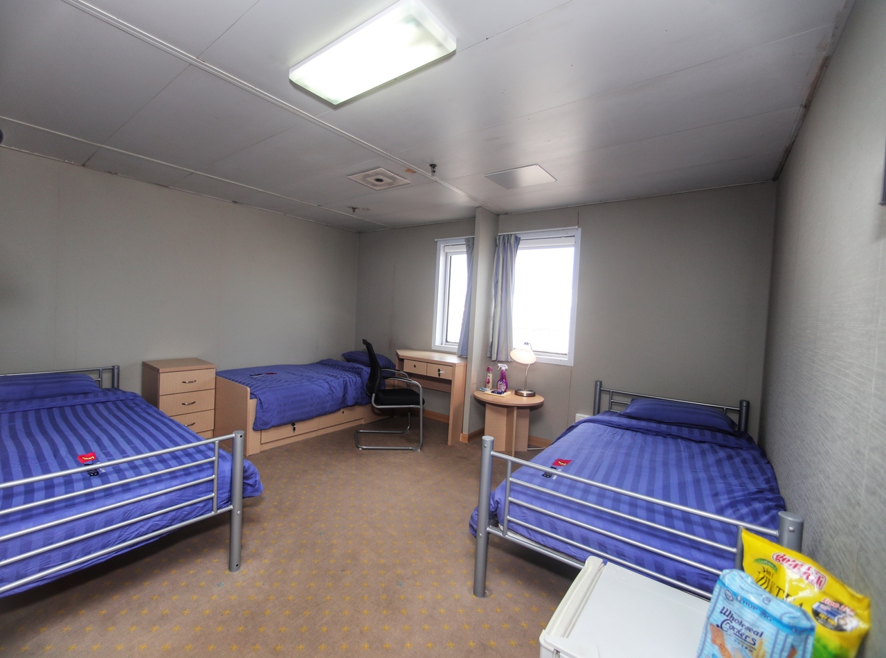 A room in a floating accommodation facility at Tanjong Pagar Terminal that is temporarily housing foreign workers.