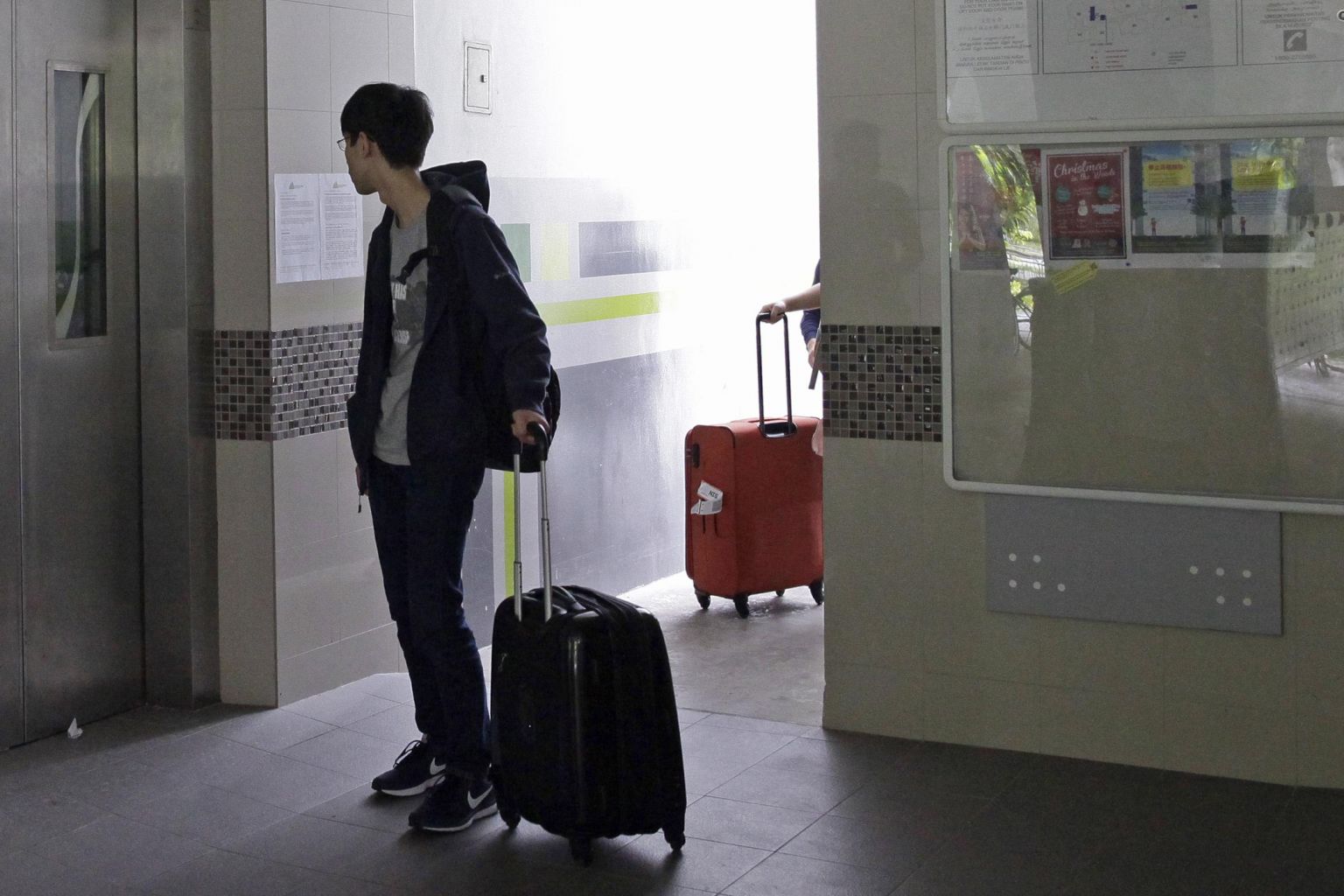 In a photo taken on Dec 27, 2013, a man with his luggage waits for a lift. Landlords found to have irresponsibly evicted residents on Leave of Absence or quarantine may face restrictions, be barred from renting out flats.