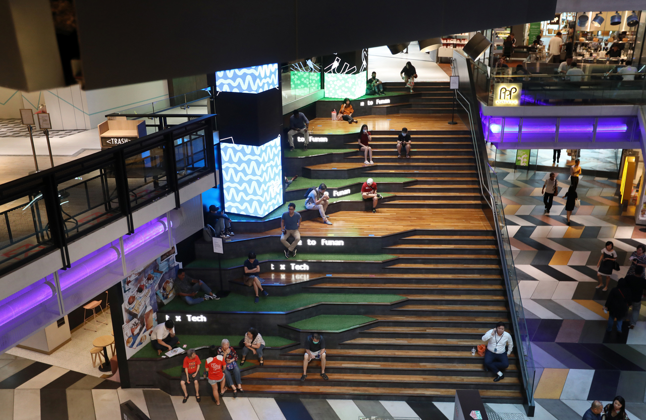 Shoppers in Funan mall on March 26, 2020. Shopping malls and standalone stores must limit the number of shoppers on their premises and disperse groups of more than 10 people.