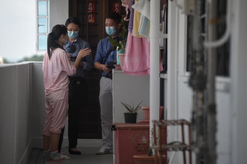 A work-pass holder, who was nearing the end of her mandatory leave of absence, being checked on by Ministry of Manpower's foreign manpower management division on Feb 12, 2020.