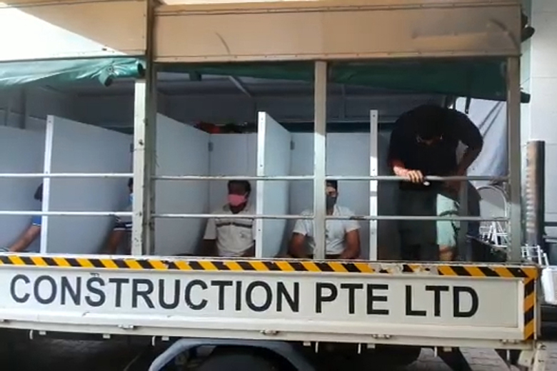SINGAPORE - A plan by a company to install partitions in the back of a lorry to ensure safe distancing while workers are being transported during the Covid-19 outbreak has not been given the green light by the authorities, even as a video of the vehicle made the rounds online.