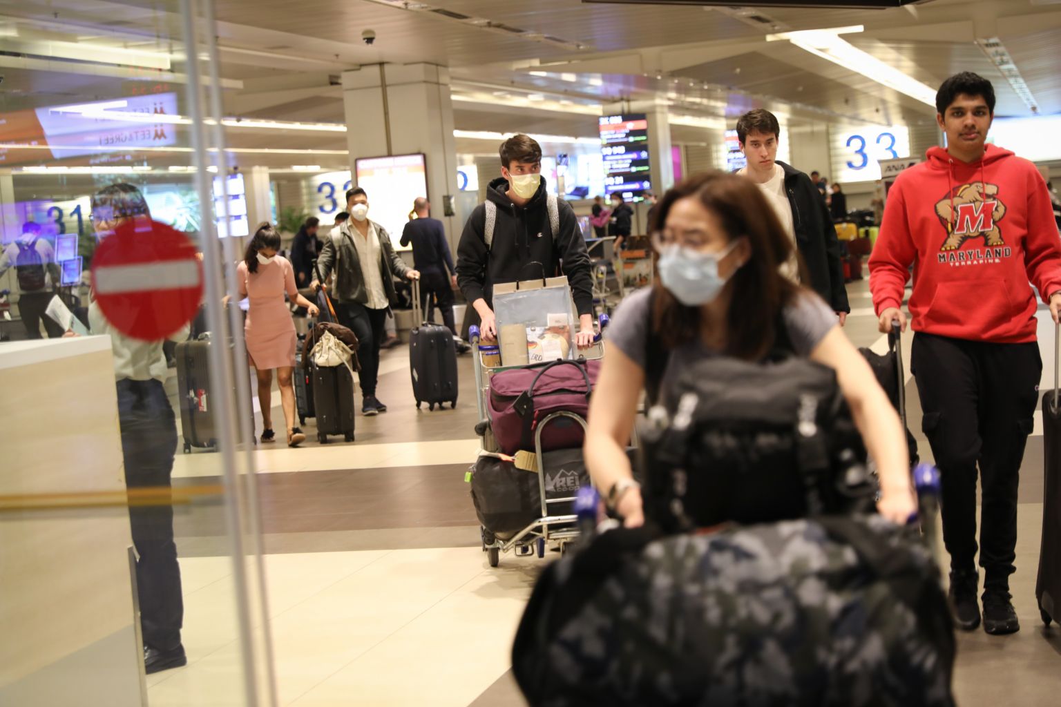 Passengers from a New York flight arriving at Changi Airport Terminal 2, on March 19, 2020.