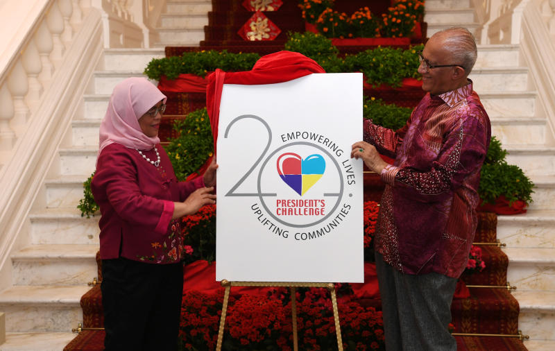 In a photo taken on Jan 26, President Halimah Yacob and Mr Mohamed Abdullah Alhabshee unveil the new President’s Challenge 2020 logo and tagline.