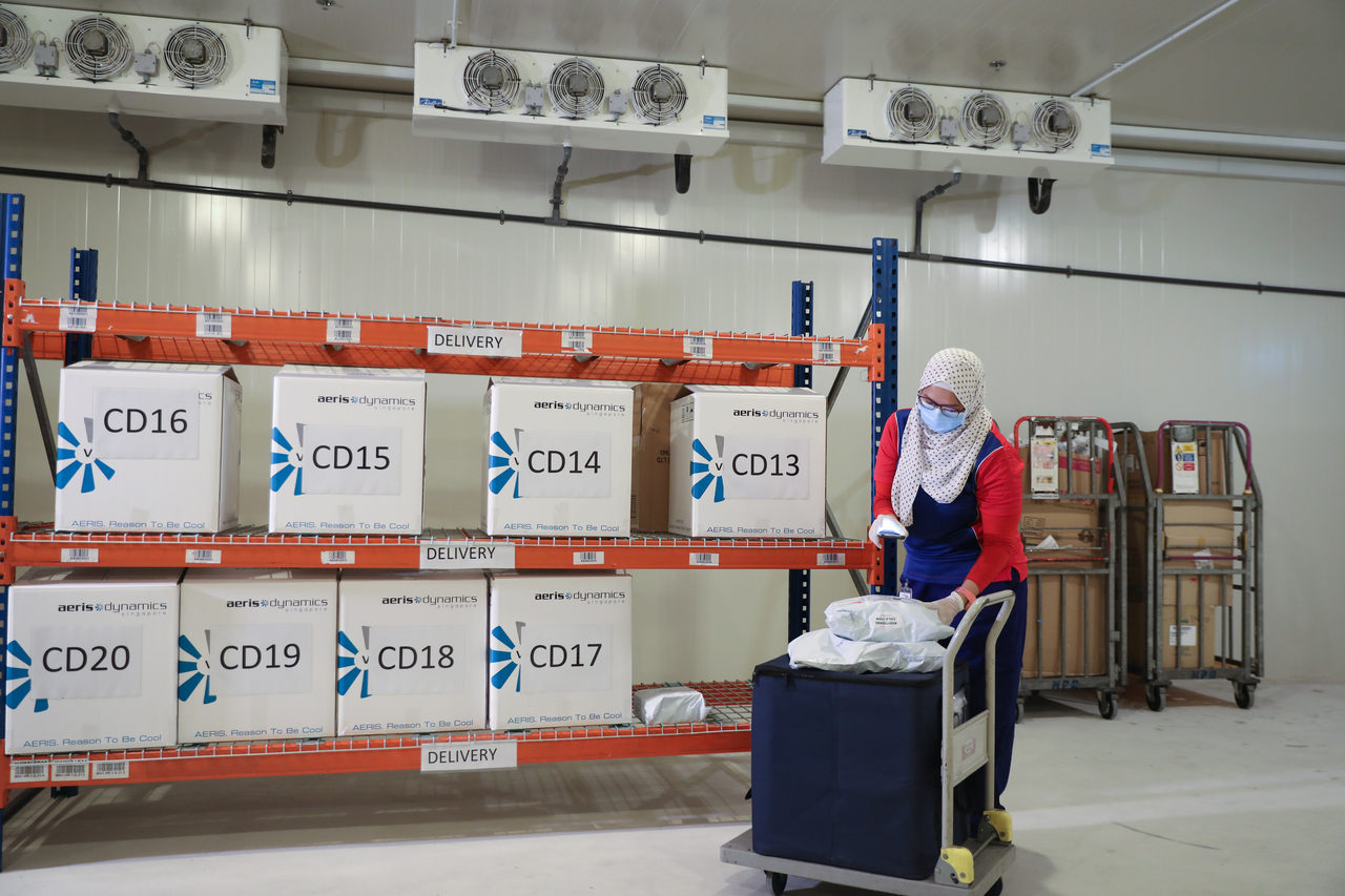 Speedpost courier Ismadiana Samsudin collecting a cold-chain box for delivery. Speedpost delivers medicines to about 300 patients daily.