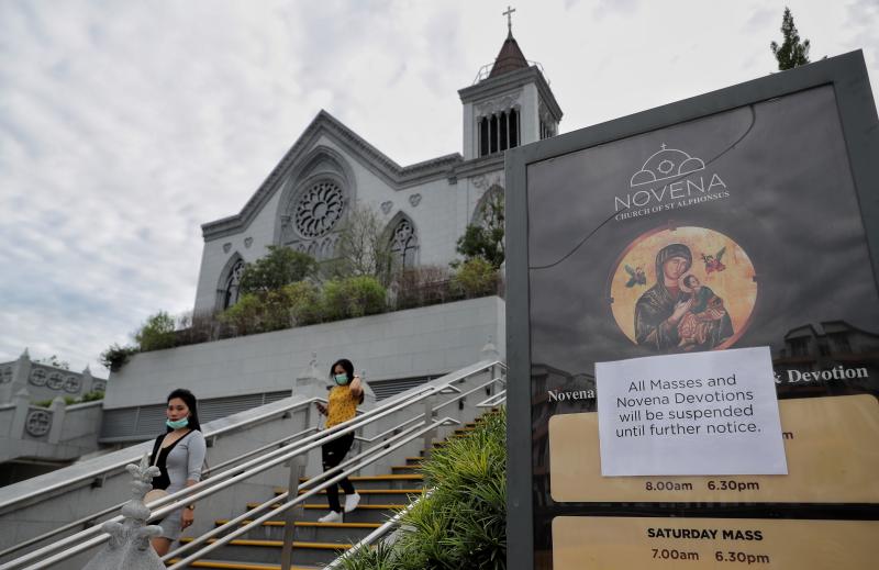 A notice at the Church of St Alphonsus in Novena informing the public that all masses have been suspended, on Feb 16, 2020.